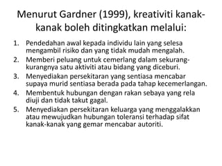 Gardner 1983 meringkaskan kecerdasan interpersonal sebagai kebolehan. Meningkatkan keyakinan motivasi dan kreativiti pelajar sewaktu pelajaran berunsur bahasa. Dalam kajiannya How ard Gardner mendapati seven ways of know ing preceiving and understanding life.